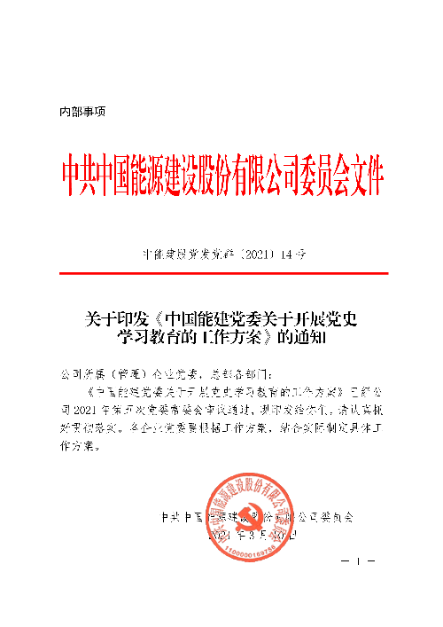 《中國(guó)能建黨委關(guān)于開(kāi)展黨史學(xué)習(xí)教育的工作方案》的通知