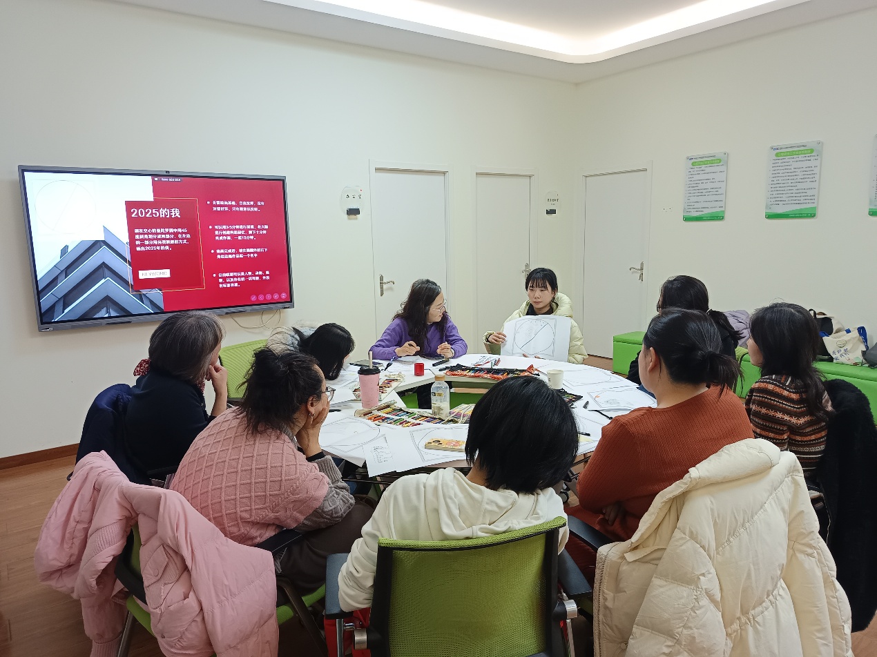 帶著對過去的梳理與整合,畫筆移至圓紙右側(cè)。老師引導(dǎo)大家描繪希望在2026年發(fā)生、或已在2025年萌芽的美好畫面。畫畢,大家用“滿足”“欣慰”“平靜”“喜悅”“激動”等積極的情緒詞匯為自己的畫作命名并寫下感受。在隨后的“壓力故事與支持需求”分享中,大家交流了壓力來源,表達了對“空間”“自我穩(wěn)定”“獨處”“被理解”等不同形式支持的渴望。無論是通過自我成長還是從關(guān)系中汲取養(yǎng)分,每個人都在努力構(gòu)建自己的心理韌性,這份共同的努力令人感動。
